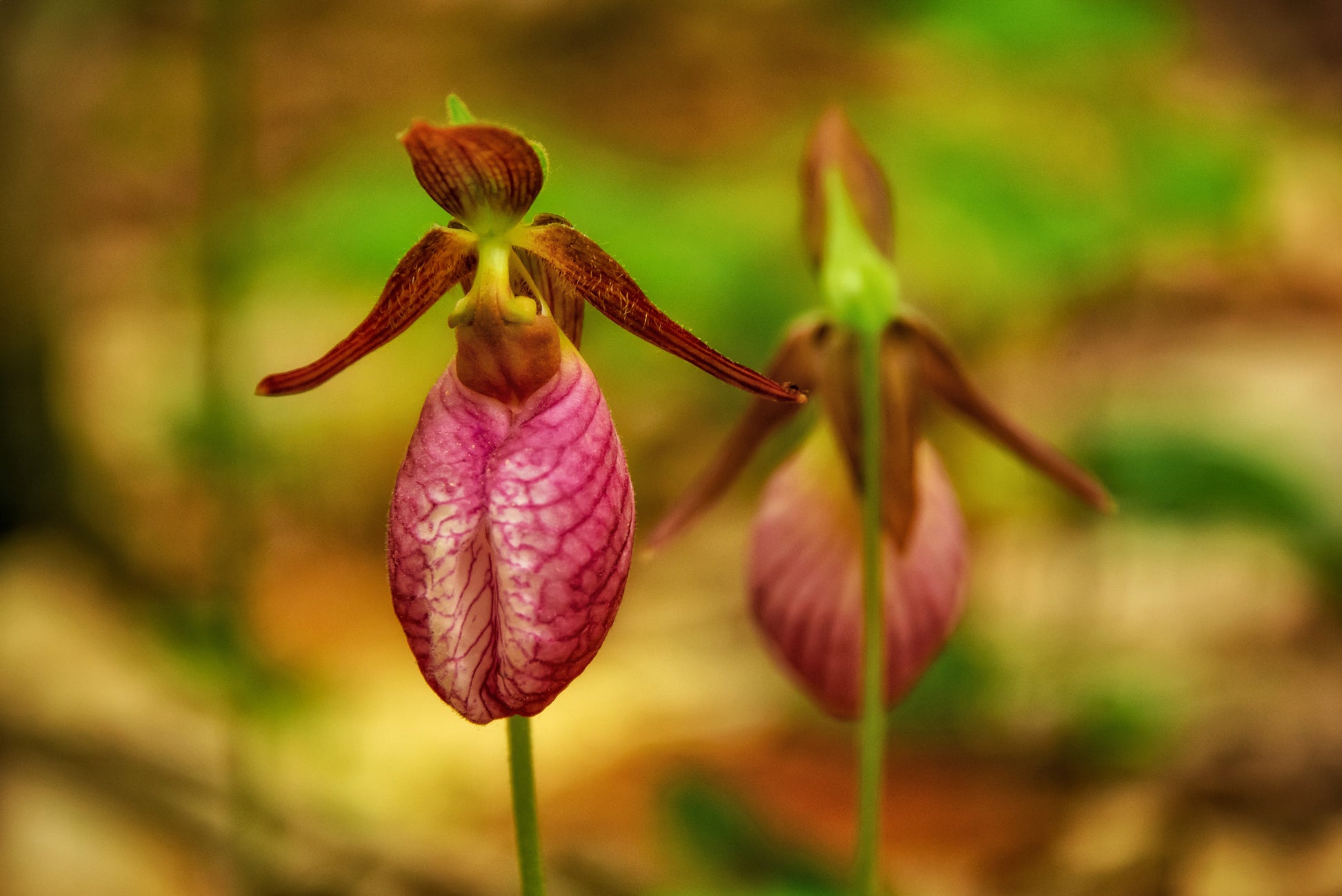 A pink lady's slipper do-si-dos to her partner beyond. A forest dance not uncommon in spring. Spring wildflower hikes are very magical indeed. Upper Manistee Headwaters: The Milock Family Preserve, Kalkaska, Michigan.