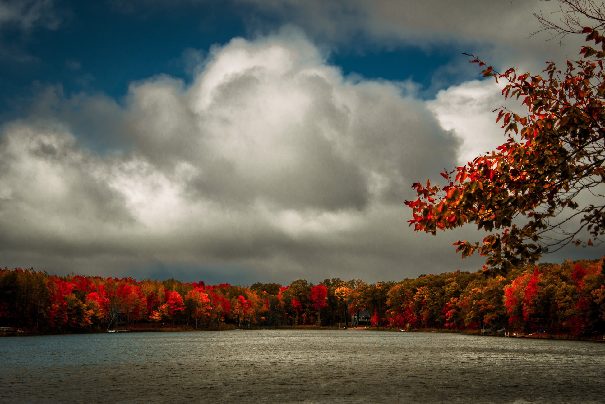 Reminiscing about the colors of fall. How could it get any better? Brilliant crisp blue skies, vibrant red maples, and gray rustling waters paint my canvas today. But wait add in a mountain of clouds above!! Perfection. Thank you Mother Nature. Just when you think it couldn't get any better it gets fantastical. Stop, wait, marvel and be rewarded. Lake Ann, Michigan